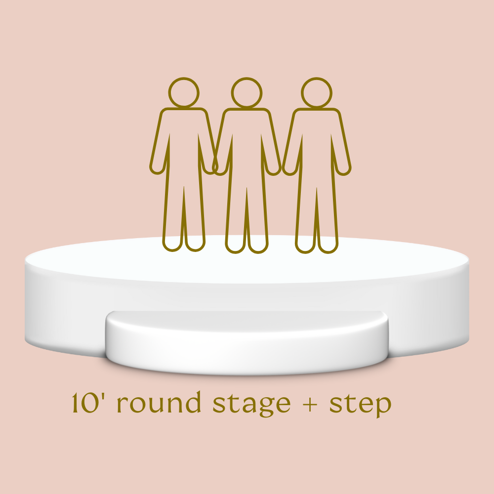 White 10" round stage with step. Perfect for ceremonies and 3 person musicians. Stairs removeable