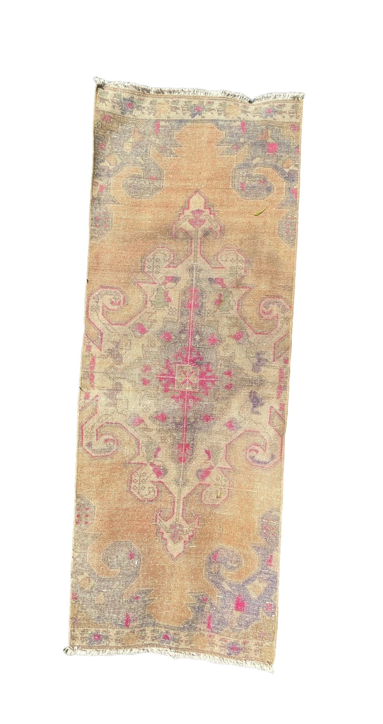 Vintage Turkish runner featuring a color burst center...caramel, magenta, and slate.