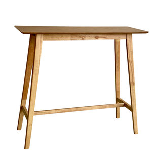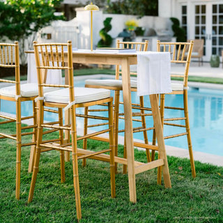 Light oak wooden bistro tables. No need for linens here. These will accommodate 2-4 people
