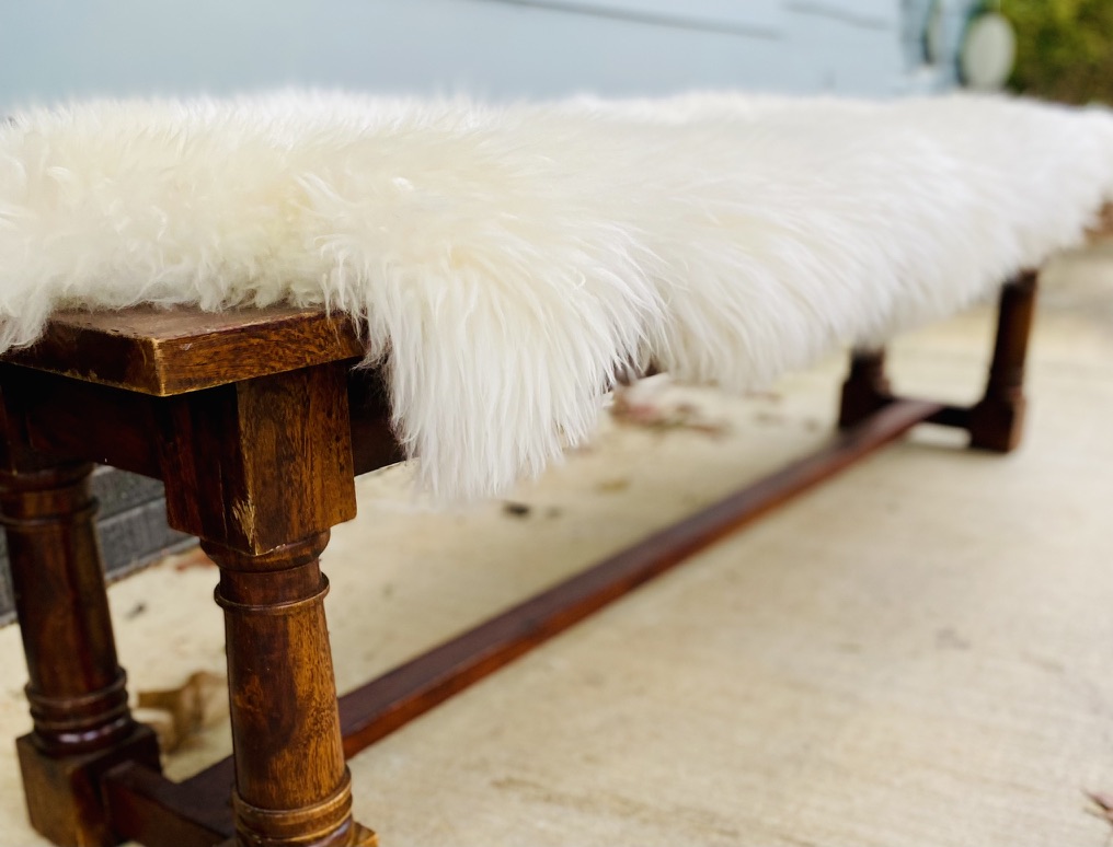 3 to 4 person solid wood bench ... sheepskin not included