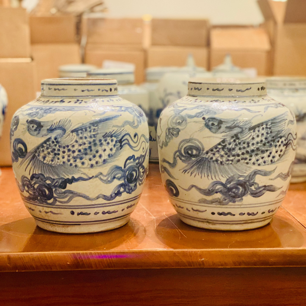 Handpainted Chinoiser~ the good stuff! Big blue bird in flight