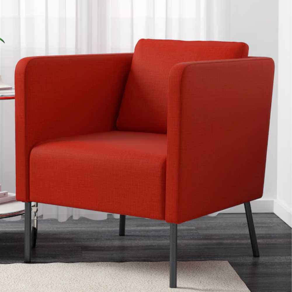 Go for stylish tones to brighten up your lounge. This armchair has a sleek, modern look with two side pieces that meet in the back and lumbar support for added comfort!
