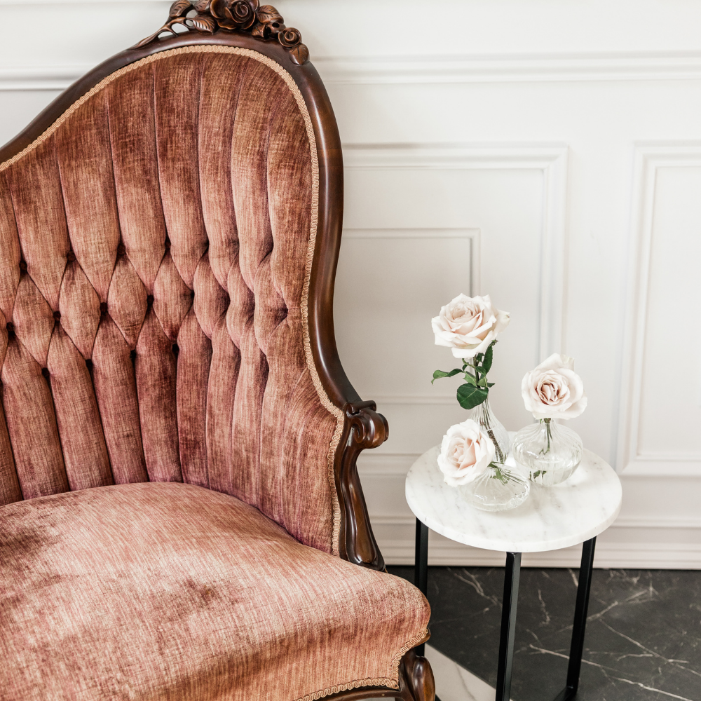 Marble and steel classic side table perfect for a few drinks and some florals