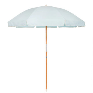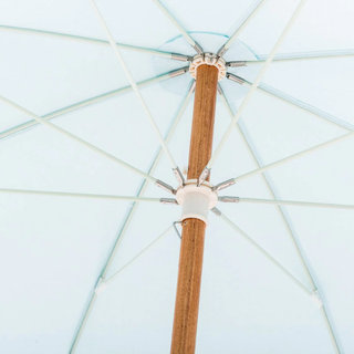 Our watery blue Lario umbrella is full of character adn she has a hint of nostalgic flair. .7' H x 6' W