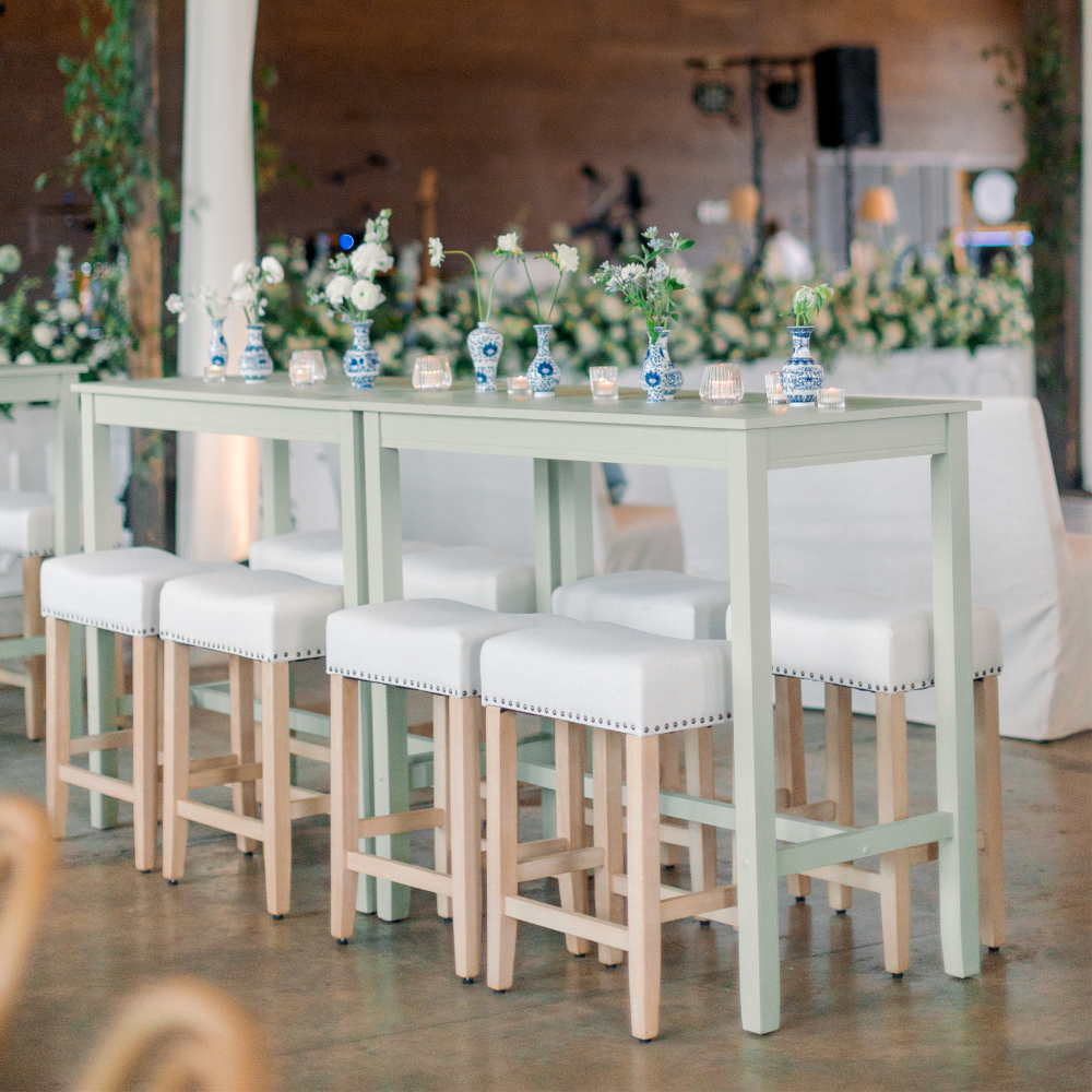 Bar top table. No need for linens here. These will accommodate 2-4 people