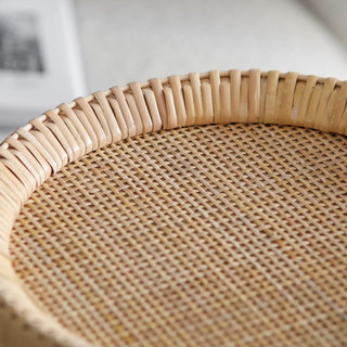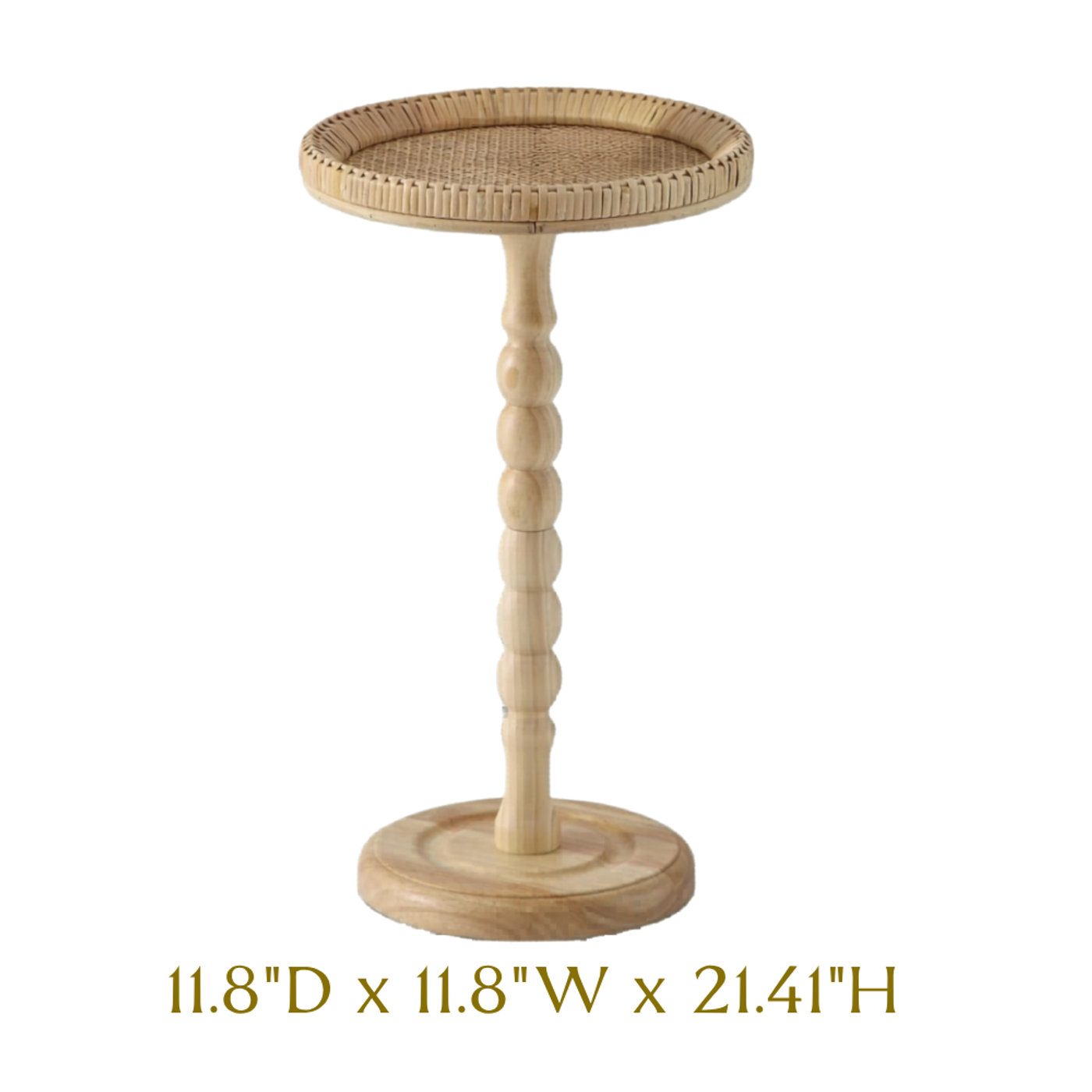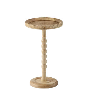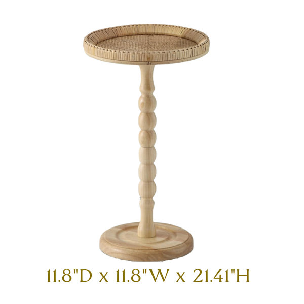 Rattan and beaded wood beverage side table that never goes out of style.