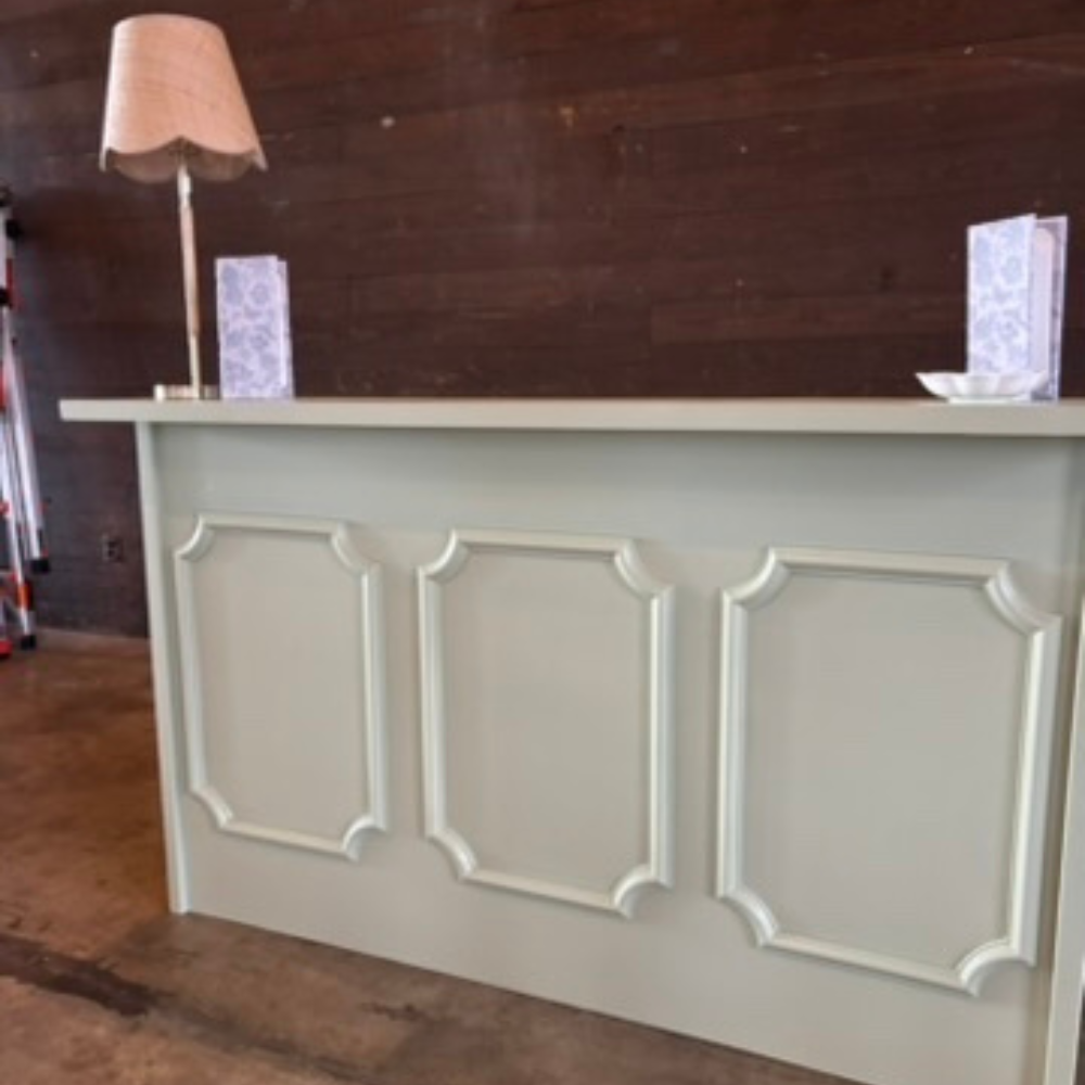 Made to be skirted with any proper size linen. Portable Bar, knocks down flat, looks beautiful & extremely functional. Features/Options: