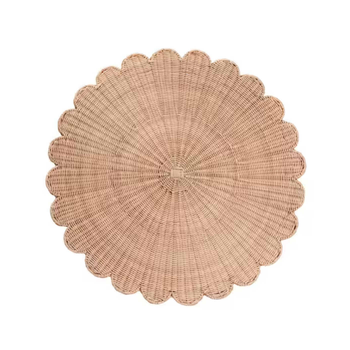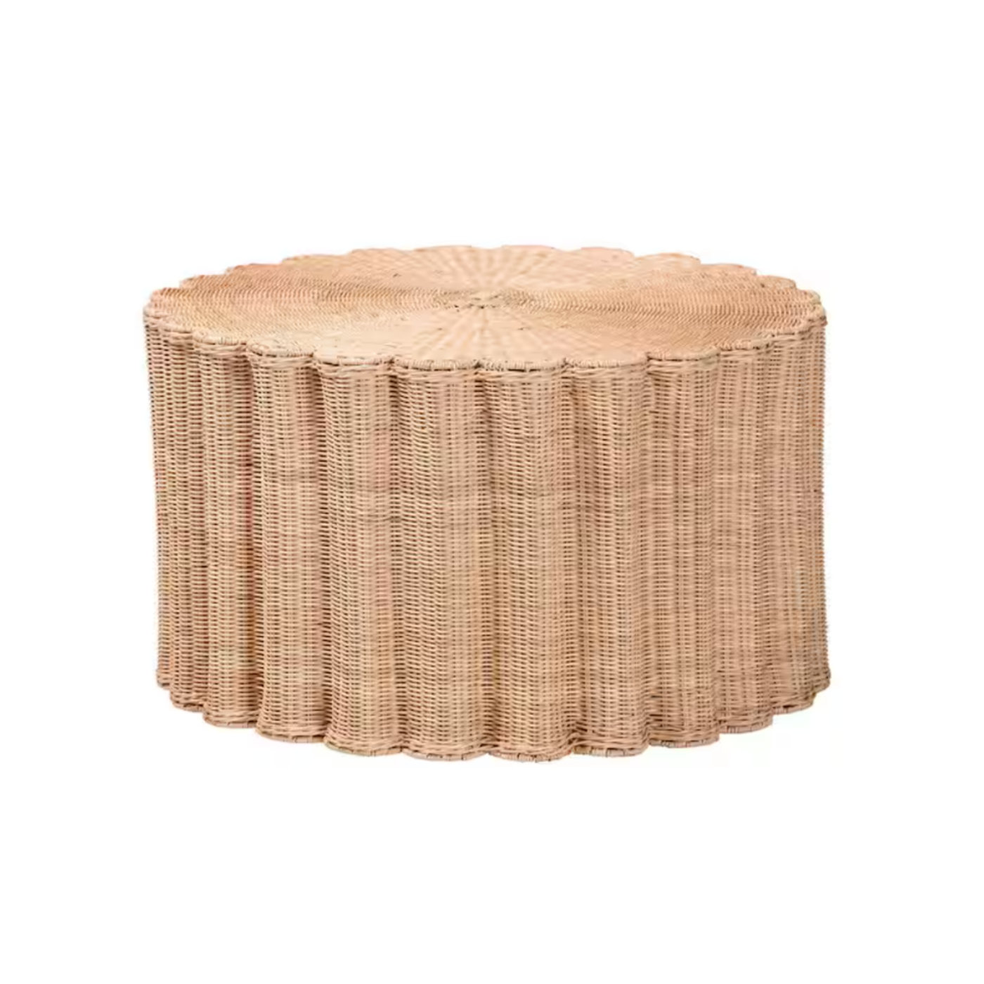 Handcrafted using natural rattan, this piece features a scalloped silhouette that brings depth, texture, and subtle architectural whimsy.