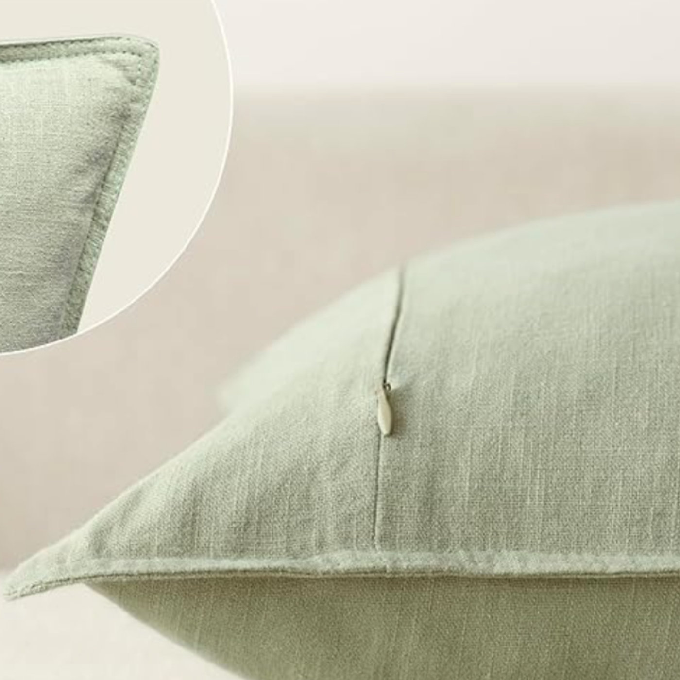 Perfect shade of light sage. Linen and cotton blend fabric. Down insert