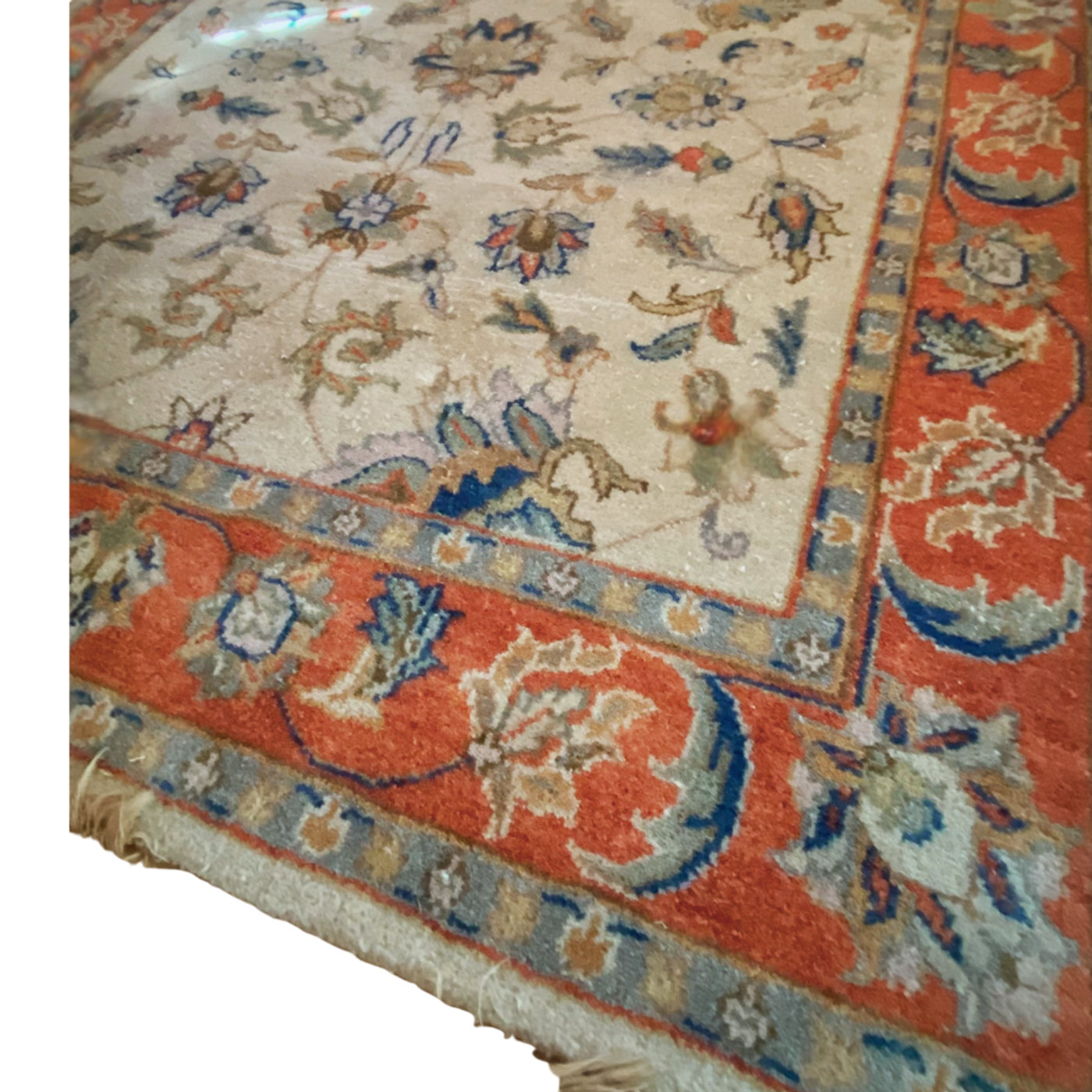 Cream, blue, and shrimp color combo makes this rug an Americana classic.