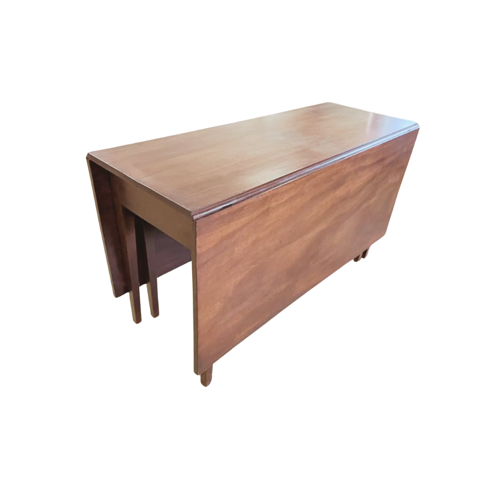 This vintage mahogany table, from the Federal period, is a drop leaf style with straight tapered swing legs. This table is a rare treasure from long ago, but still relevent today when paired with something new. This piece is VINTAGE and will have signs of wear and age. Honestly, that's what makes it so special.