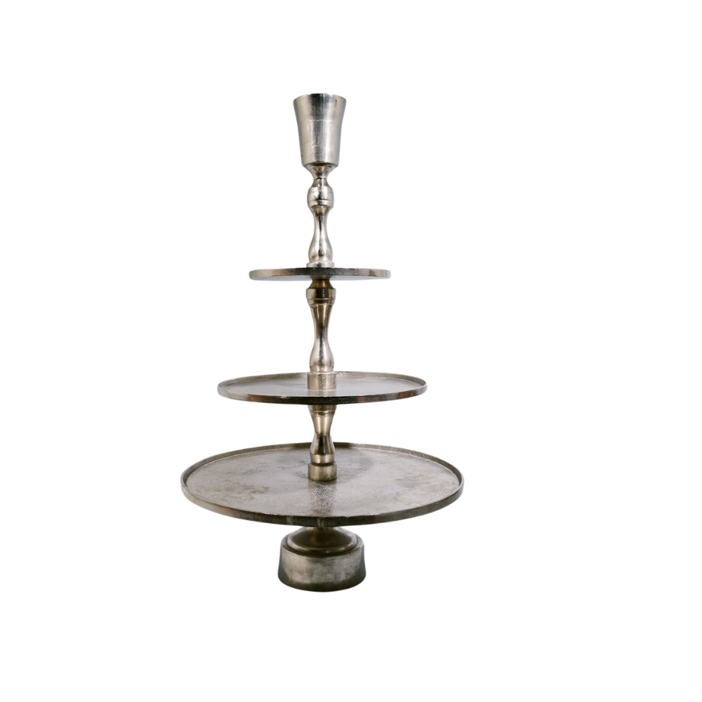 Slightly shorter Sula, this beautiful Indian made tower of servers works well for beverages, desserts, gifts, etc.