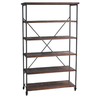 Add a handforged look to the mix with this 4 shelf unit. Wood and iron featuring caster wheels.
